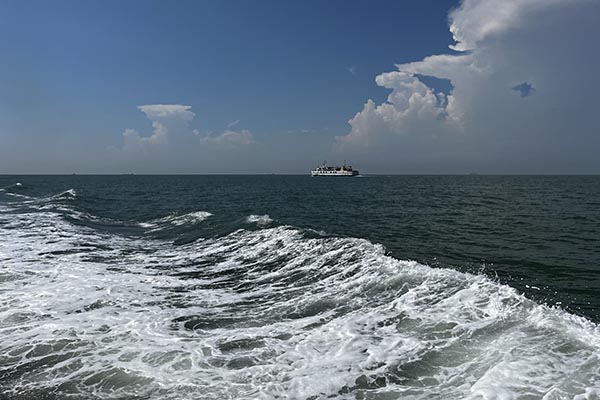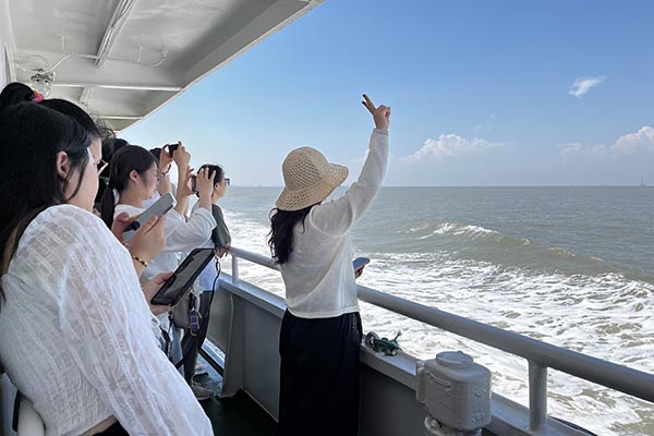 在清晨七點(diǎn)半的晨光中,滿載歡聲笑語(yǔ)的大巴,如同一艘陸地航船,載著我們駛向那片心心念念的蔚藍(lán)。一路上的談天說(shuō)地,讓四個(gè)小時(shí)的車(chē)程變得輕快。當(dāng)咸腥的海風(fēng)透過(guò)車(chē)窗拂面而來(lái),我們便知,目的地近了。沈家灣碼頭人頭攢動(dòng),我們的興奮之情也隨著海浪輕輕蕩漾。登上游輪,劈波斬浪,船艙內(nèi)是同事們不絕于耳的驚嘆與快門(mén)聲。那一刻,所有工作的疲憊仿佛都被海風(fēng)吹散,拋在了身后。