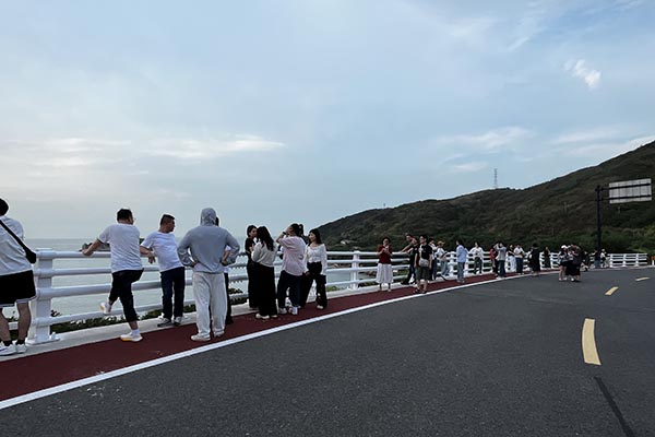 踏上嵊泗本島,入住稍作休整后,我們便迫不及待地投入它的懷抱。東海漁村的古樸與左岸公路的浪漫交織成一幅動(dòng)人的畫(huà)卷。沿著海岸線漫步,看夕陽(yáng)將海面染成金黃,平日里在辦公室嚴(yán)謹(jǐn)專注的同事們,此刻都是閑庭信步的旅人,笑容格外燦爛。
